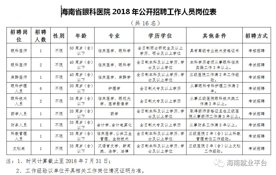 招聘公告发布在海南省人民政府网、海南省人力资源和社会保障厅、海南省卫生和计划生育委员会和海南省眼科医院门户网站。