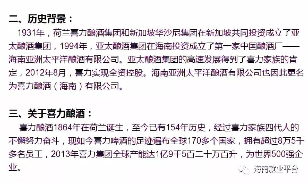 ϲÁ¦º£ÄÏÓÉϲÁ¦Ã³Ò×£¨ÉϺ££©ÓÐÏÞ¹«Ë¾ÑóÆÖ·Ö¹«Ë¾ºÍϲÁ¦Äð¾Æ£¨º£ÄÏ£©ÓÐÏÞ¹«Ë¾×é³É£¬Á½¼Ò¹«Ë¾Í¬Ñù¶¼Á¥ÊôÓÚºÉÀ¼Ï²Á¦¼¯ÍÅÆìÏ£¬Ä¿Ç°¹²ÓµÓнü400ÃûÔ±¹¤£¬Ï²Á¦º£ÄÏ´´½¨ÓÚ1994Ä꣬Àúʱ2ÄêÍê³É³§Çø½¨Éè¡£1997Äê5ÔÂ19ÈÕÓÚº£ÄÏÕýʽͶ²ú£¬Õ¼µØÃæ»ý345Ķ£¬Éú²úÄÜÁ¦´ïµ½15Íò¶Ö£¬×ÜͶ×Ê´ï1.5ÒÚÃÀÔª£¬Ä¿Ç°¹«Ë¾ÆìϹ²ÓµÓÐϲÁ¦¡¢»¢ÅÆ¡¢Á¦¼ÓÈý´ó¹ú¼ÊÆ·ÅÆÆ¡¾Æ£¬Æä²úÆ·È«²¿²ÉÓÃÊÀ½çÉÏ×îÓÅÖʵÄÔÁϺͺÉÀ¼Ï²Á¦¼¯ÍÅÉú²ú¼¼ÊõÄðÔì¶ø³É£¬¿Ú¸ÐÇ崼ˬ¿Ú£¬¸ßÆ·ÖÊÆ¡¾ÆÂÅ»ñ¹ú¼Ê´ó½±¡£