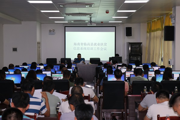 临高县各镇分管就业工作领导、就业协管员,各村委会就业扶贫信息专员约200人参加培训。(王强)