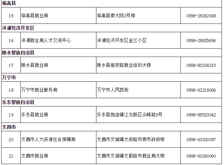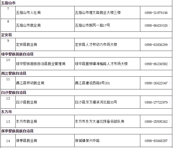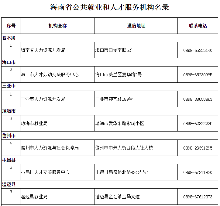 海南省公共就业和人才服务机构名录
