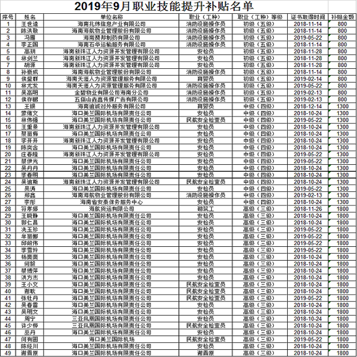 根据《省人力资源和社会保障厅、省财政厅关于失业保险支持参保职工提升职业技能有关问题的通知》(琼人社发〔2017〕202号)要求,现将9月份省本级企业在职职工申领职业技能提升补贴情况公示。
