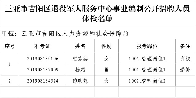 ¸½¼þ£ºÈýÑÇÊмªÑôÇøÍËÒÛ¾üÈË·þÎñÖÐÐÄÊÂÒµ±àÖÆ¹«¿ªÕÐÆ¸ÈËÔ±Ìå¼ìÃûµ¥