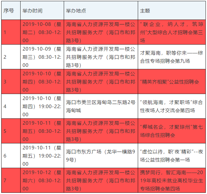 地址:海南省人力资源开发局一楼公共招聘服务大厅(海口市和邦路3号)