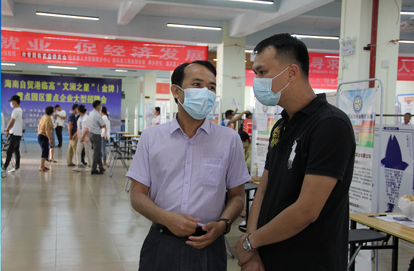4月7日上午,2021年海南自贸港临高“文澜之星”(金牌)重点园区重点企业大型招聘会在该县人才创业孵化基地内成功举办。临高县人力资源服务中心主任王志松,副主任林华出席招聘会。