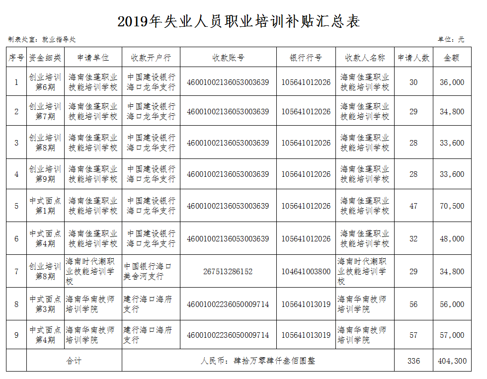 2019ÄêʧҵÈËÔ±Ö°ÒµÅàѵ²¹Ìù»ã×ܱí